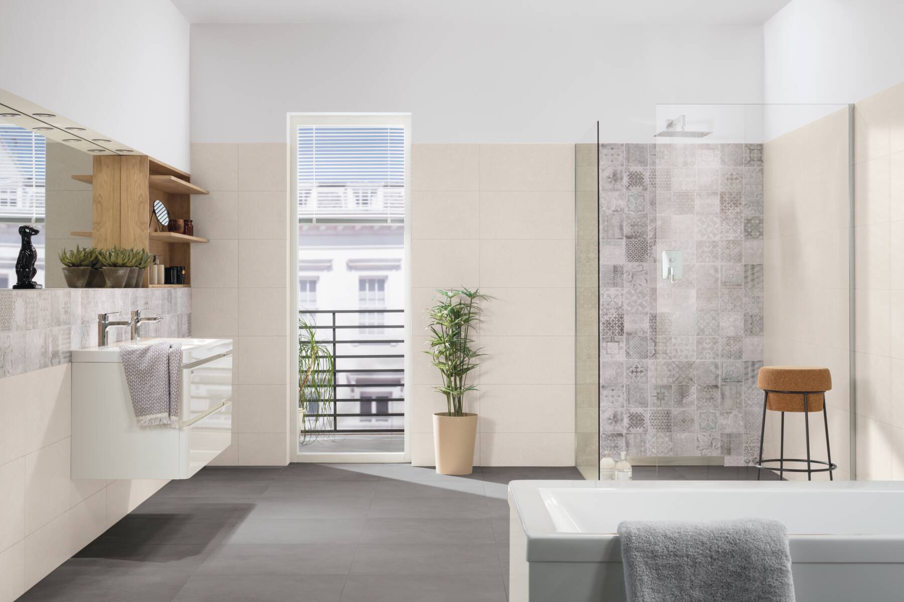 The small pebble inclusions soften the subtle concrete appearance and create a charming sense of realism. From cool colors to Mediterranean nuances, open up an ambitious range of designs. Two light-colored variants of the wall design as well as graphic decorations and numerous accessories complete the variety.