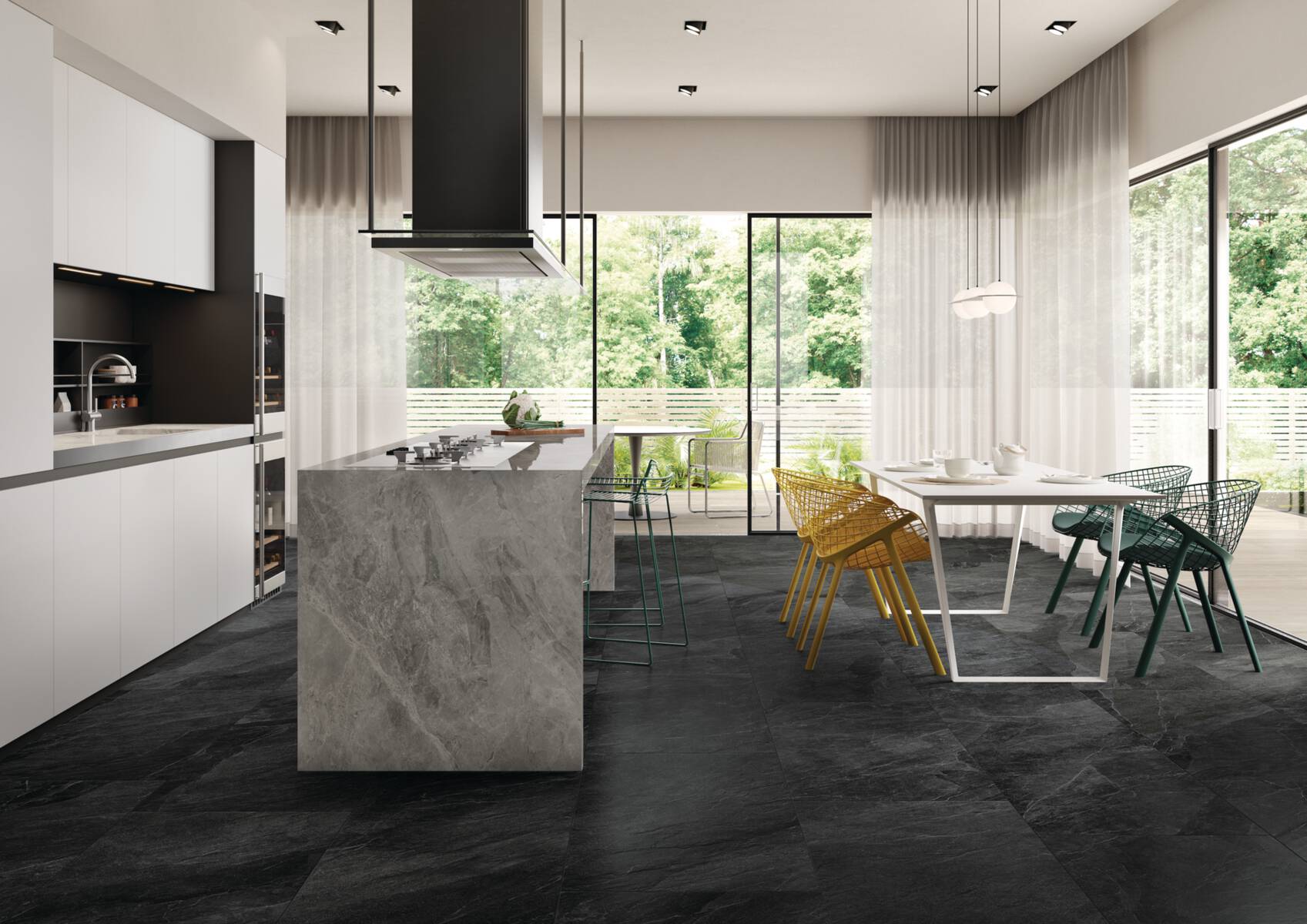 Eine Optik, wie Sie die Natur hätte nicht besser kreieren können. Die schiefertypische natürliche Vielfalt in den Oberflächen versprüht eine modern kühle und zugleich anmutige Ausstrahlung, ohne dabei zu viel Raum zu fordern. Das breite Farbspektrum und die zugehörige Outdoorvariante ermöglichen stilvolle sanfte Kontraste und harmonische Verbindungen. Perfekt zu kombinieren mit einem reduzierten Einrichtungsstil und klaren Linien.