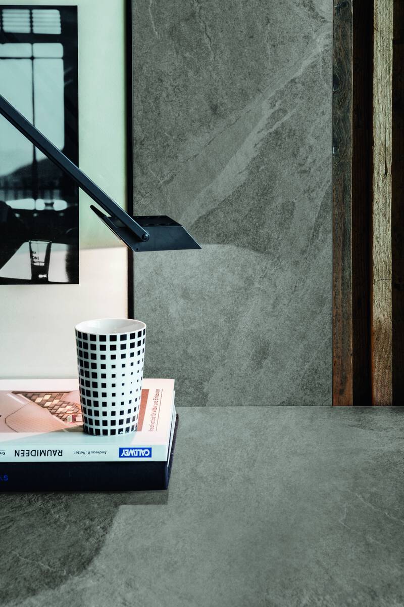 Feine Schiefernuancen durchziehen die Oberfläche und verleihen eine beeindruckende Tiefe. Subtile Strukturen und zarte Schattierungen erzeugen eine natürliche Lebendigkeit, die gleichzeitig moderne Klarheit ausstrahlt. Von kühlen Grauabstufungen bis hin zu warmen, erdigen Tönen entfaltet sich ein harmonisches Farbspektrum, das sowohl puristische Architektur als auch wohnliche Interieurs perfekt ergänzt. Die großzügigen Formate lassen Räume und Außenbereiche weitläufig, elegant und einladend wirken.