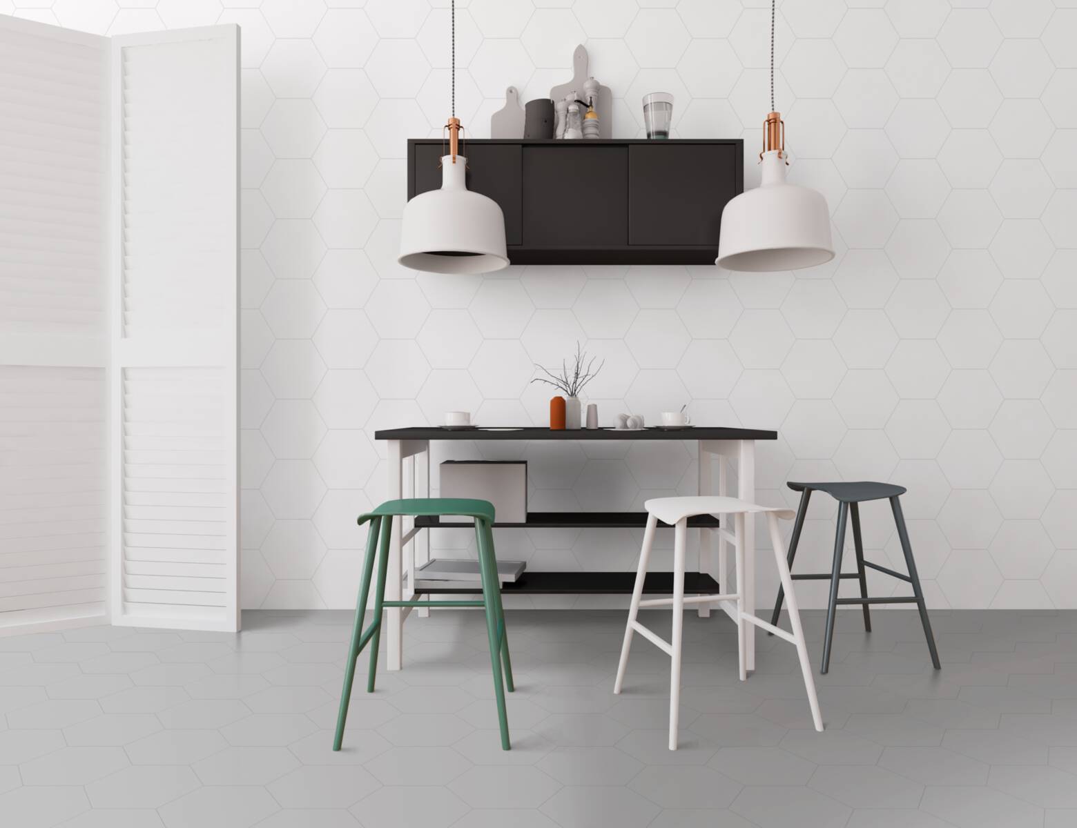 Kräftige bunte Farben und eine klare Palette von Weiß bis Schwarz, wahlweise in quadratischem oder sechseckigem Format. Die fein abgestimmten Farben lassen sich wunderbar miteinander kombinieren und laden zum kreativen Einsatz der verschiedenen Formate ein.