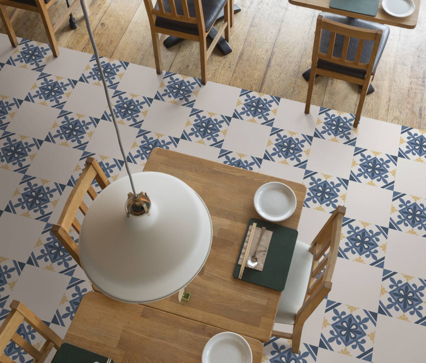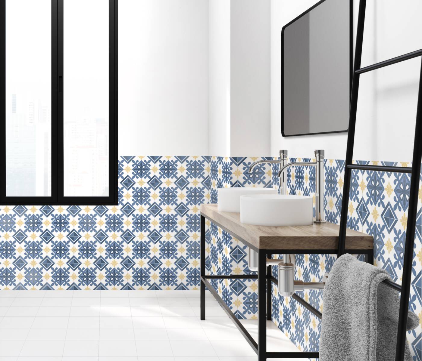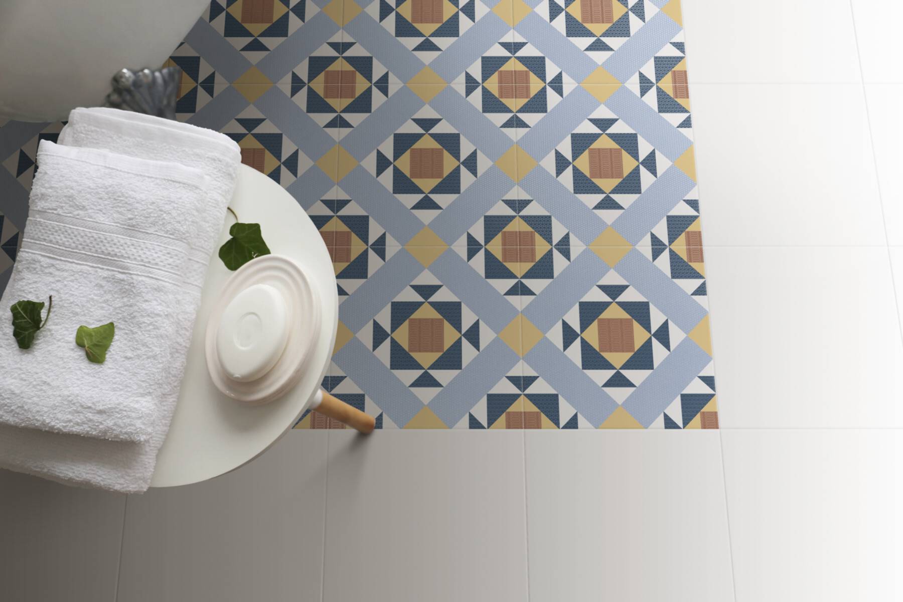 Gute Laune pur. Eine Explosion an Farben und Formen, kraftvoll, ausdrucksstark und herrlich unbeschwert. Die Verlegung als Randfries kehrt spielerisch bisher Dagewesenes um und überrascht mit tollem Effekt.