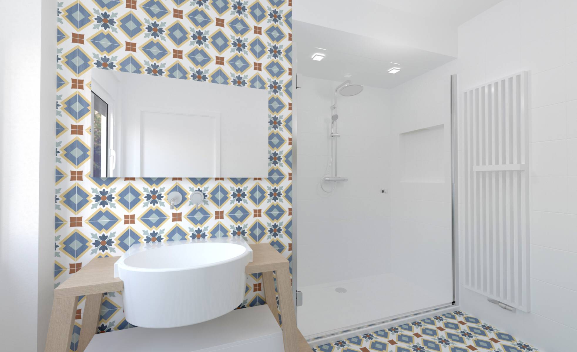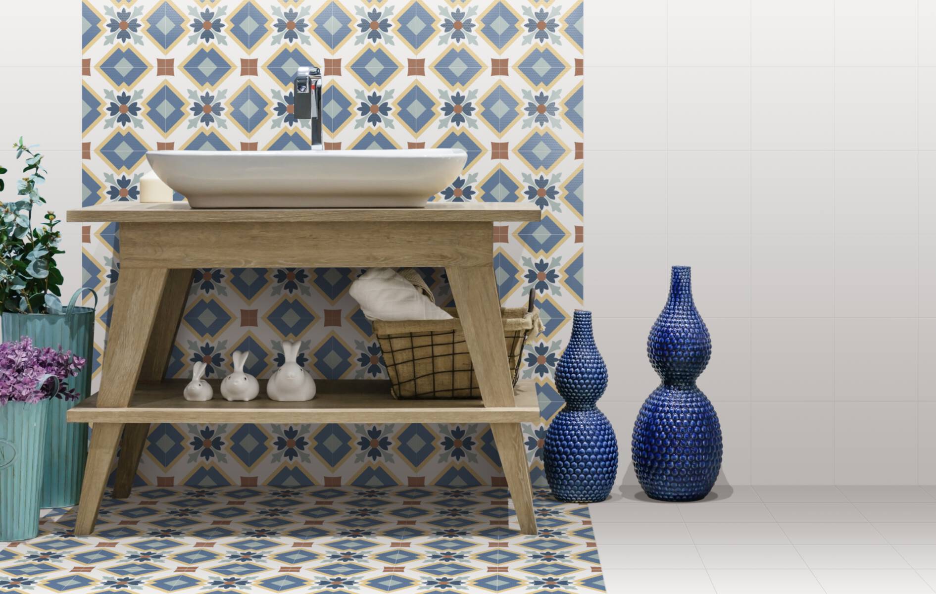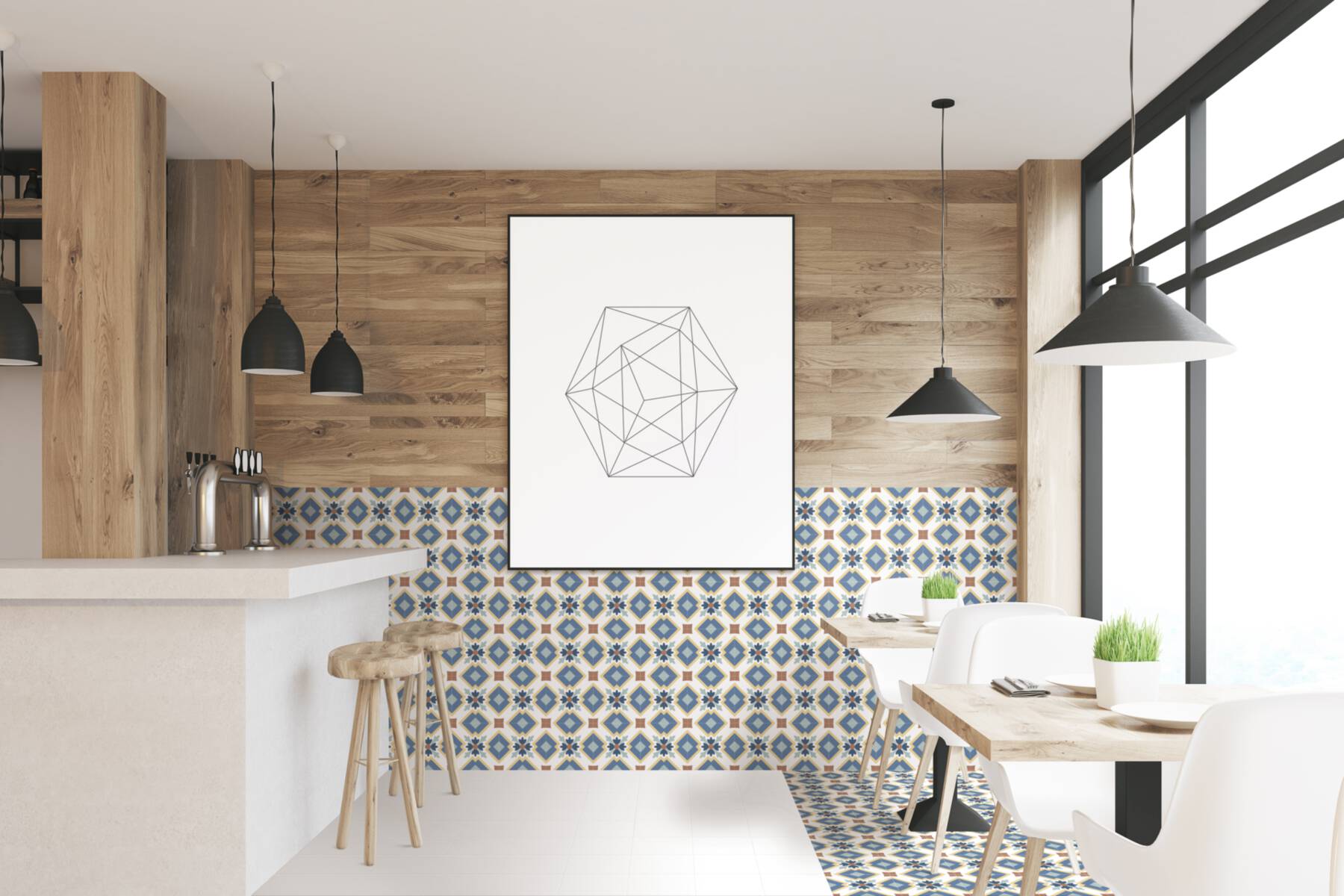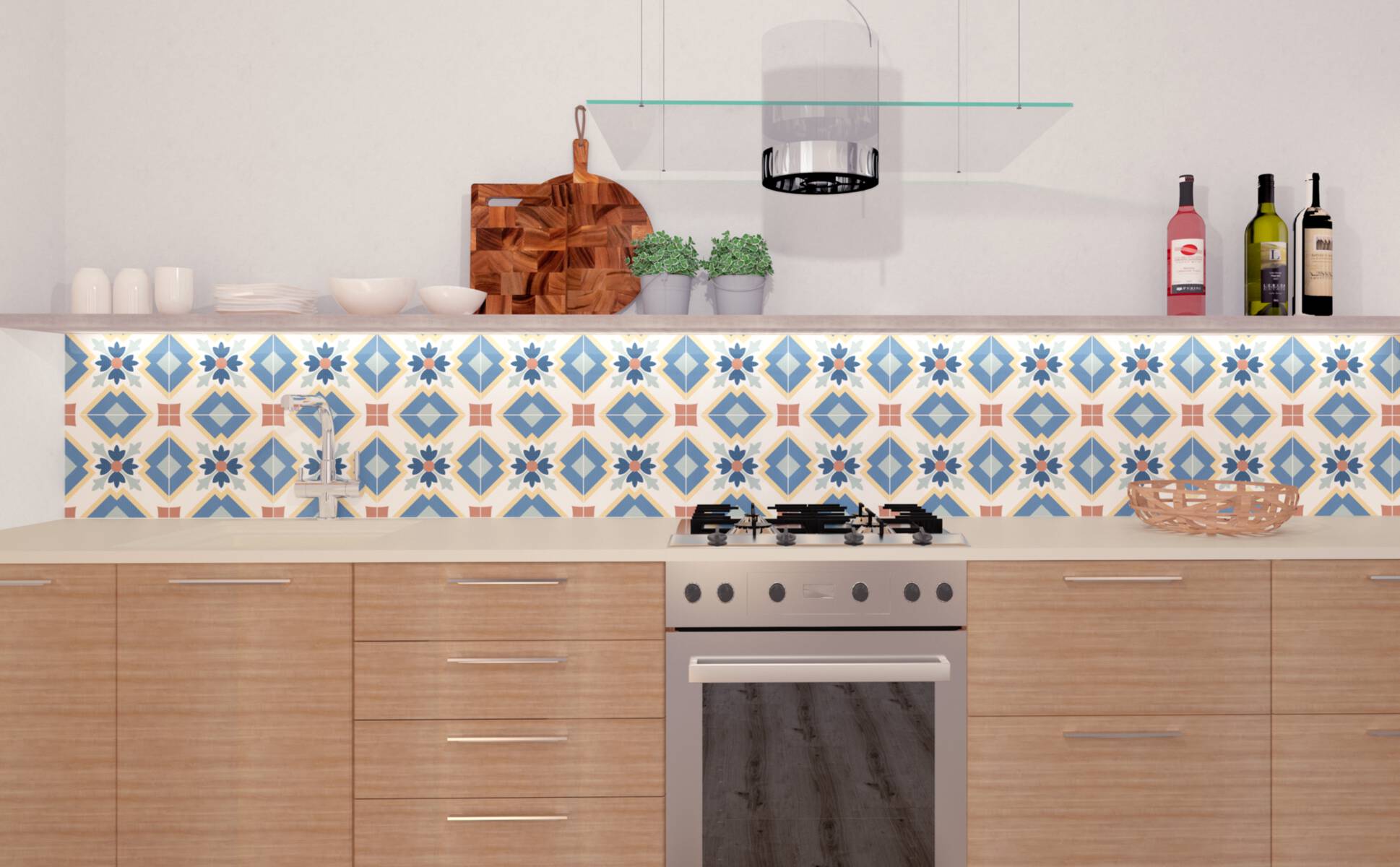 Gute Laune pur. Eine Explosion an Farben und Formen, kraftvoll, ausdrucksstark und herrlich unbeschwert. Die Verlegung als Randfries kehrt spielerisch bisher Dagewesenes um und überrascht mit tollem Effekt.