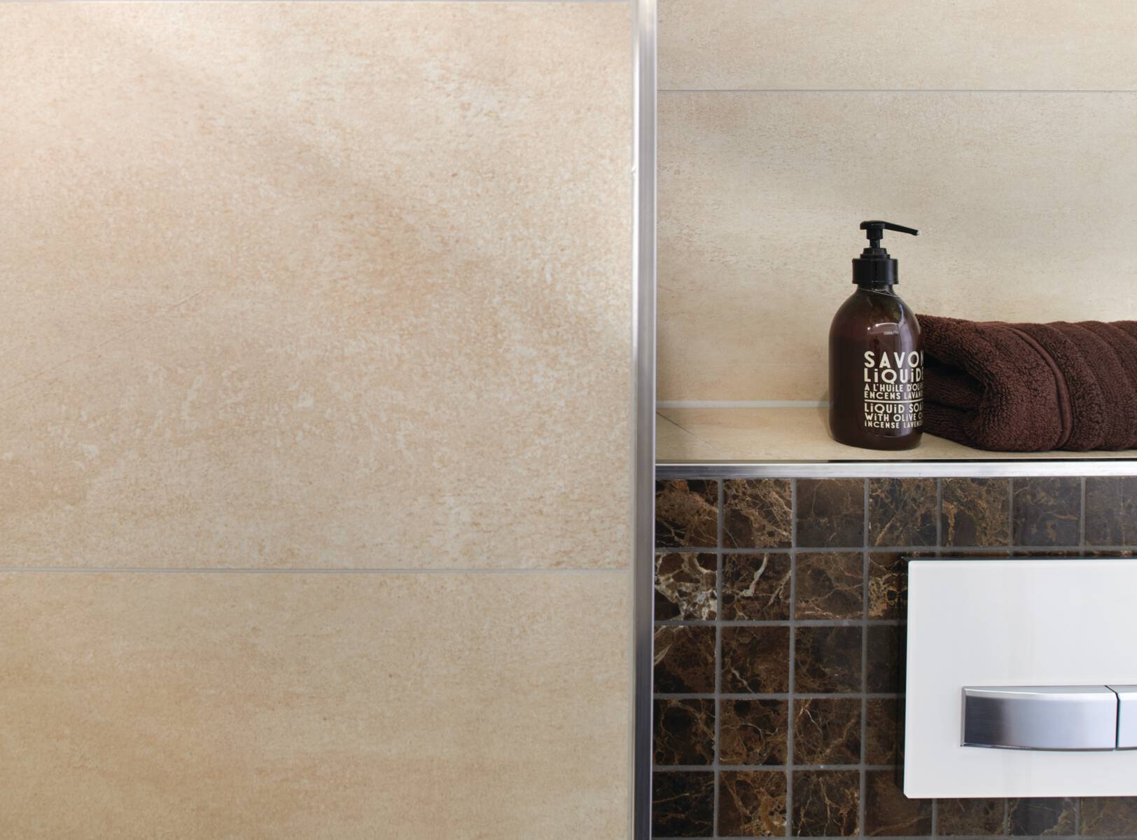 Die ausgewogene Steinoptik präsentiert sich in fünf erdigen und fein aufeinander abgestimmten Farbtönen als vielfältiges Interior-Talent für urbanes und zugleich natürliches Flair. Der Look kann dank der starken Formatauswahl und den zahlreichen Zubehörartikeln in allen Räumen modern interpretiert werden.