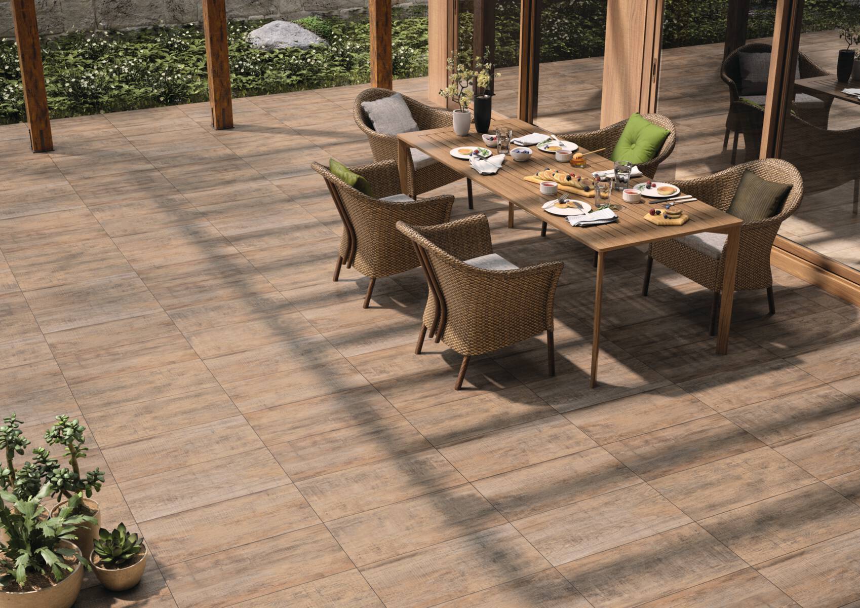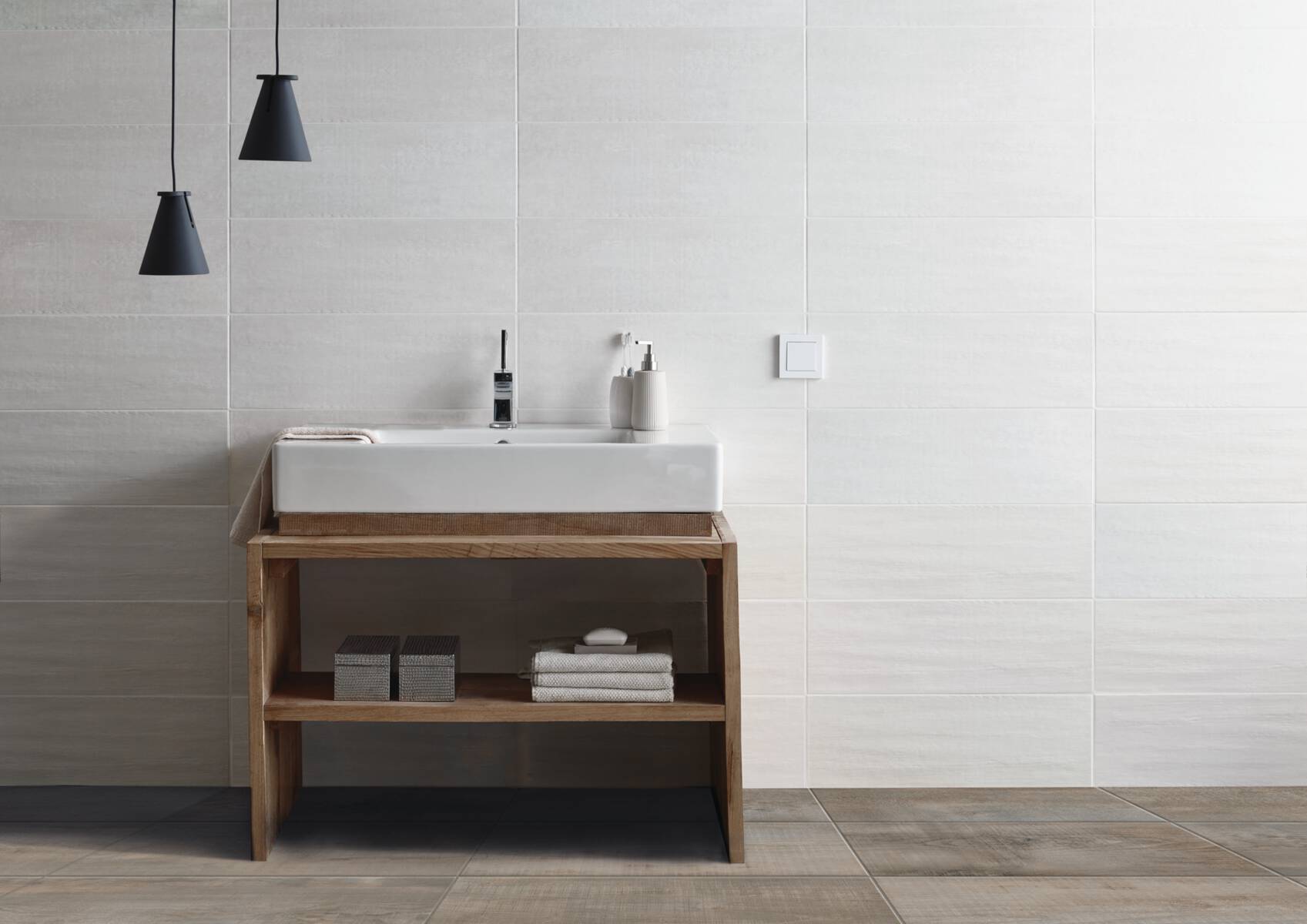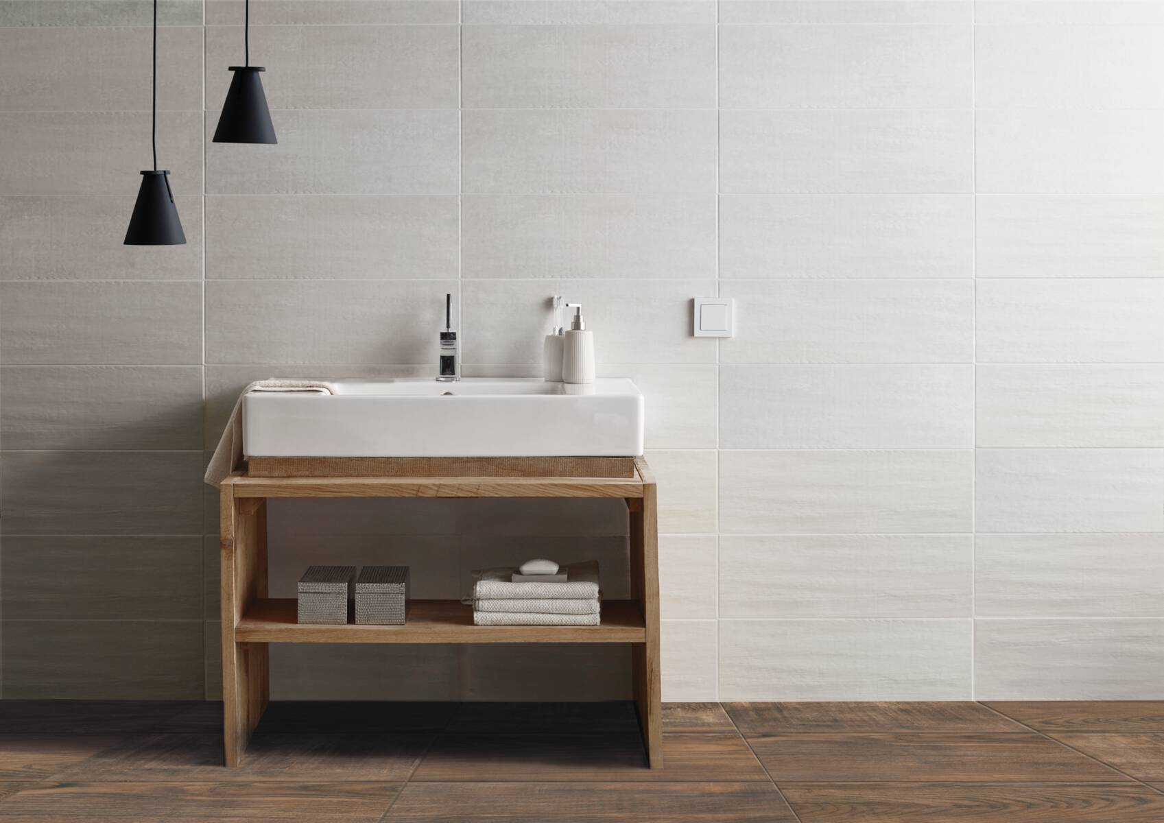 Angedeutete Sägeschnitte, Maserungen und natürliche Farben geben das Vorbild Holz auf moderne Art und Weise wieder und formen einen rustikalen Look. Der so entstehende Country-Charme bietet zahlreichen Interior-Ideen Raum und kann mit den passenden Wandfliesen abgerundet werden.
