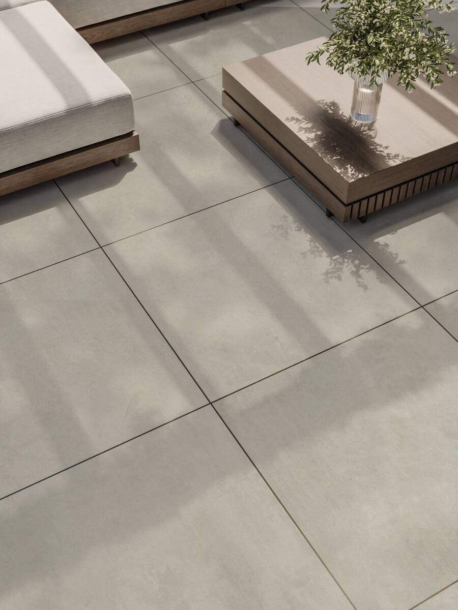 Die klare Ausstrahlung dieser Bodenfliesenserie ist für dynamisch offene Arrangements mit minimalistischem Touch ein echtes Essential. Die moderne und vielseitige Farbauswahl der wolkigen Betonoptik von Off-White über Beige bis Anthrazit ermöglicht fein aufeinander abgestimmte Arrangements und fließende Übergänge sowohl Indoor als auch im Outdoorbereich.