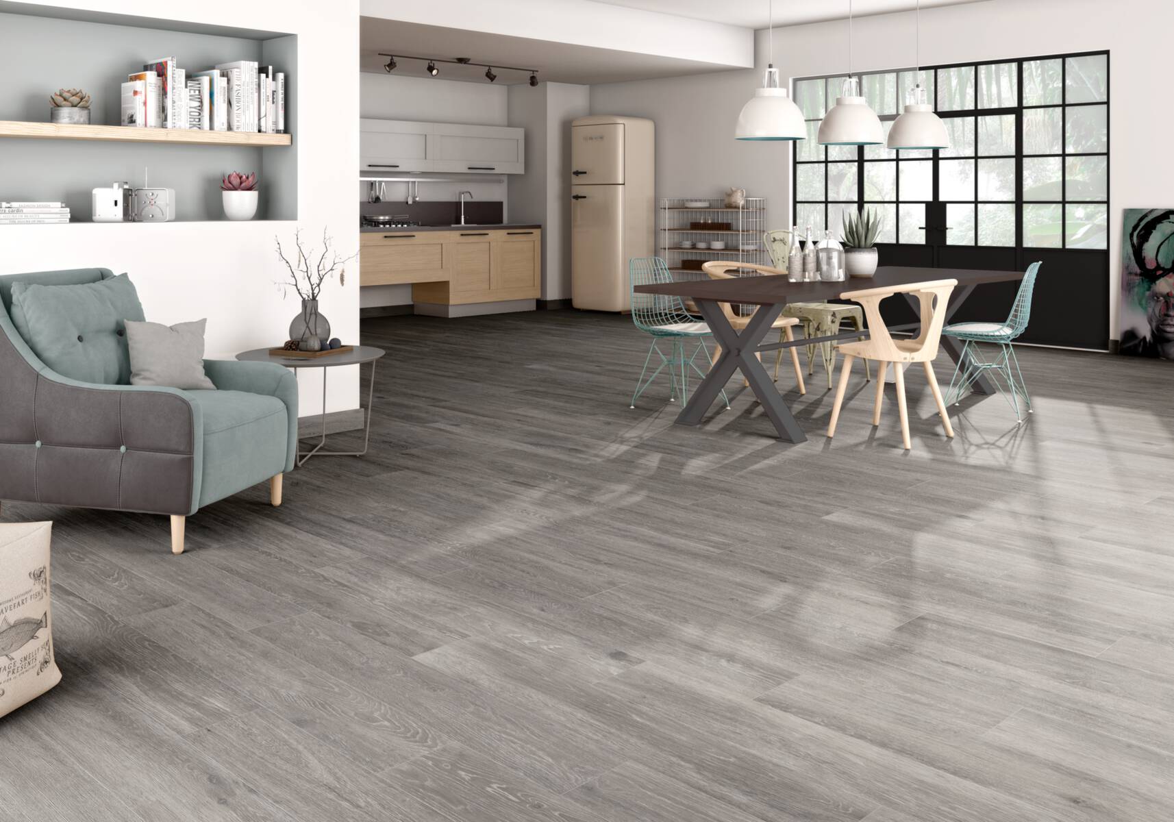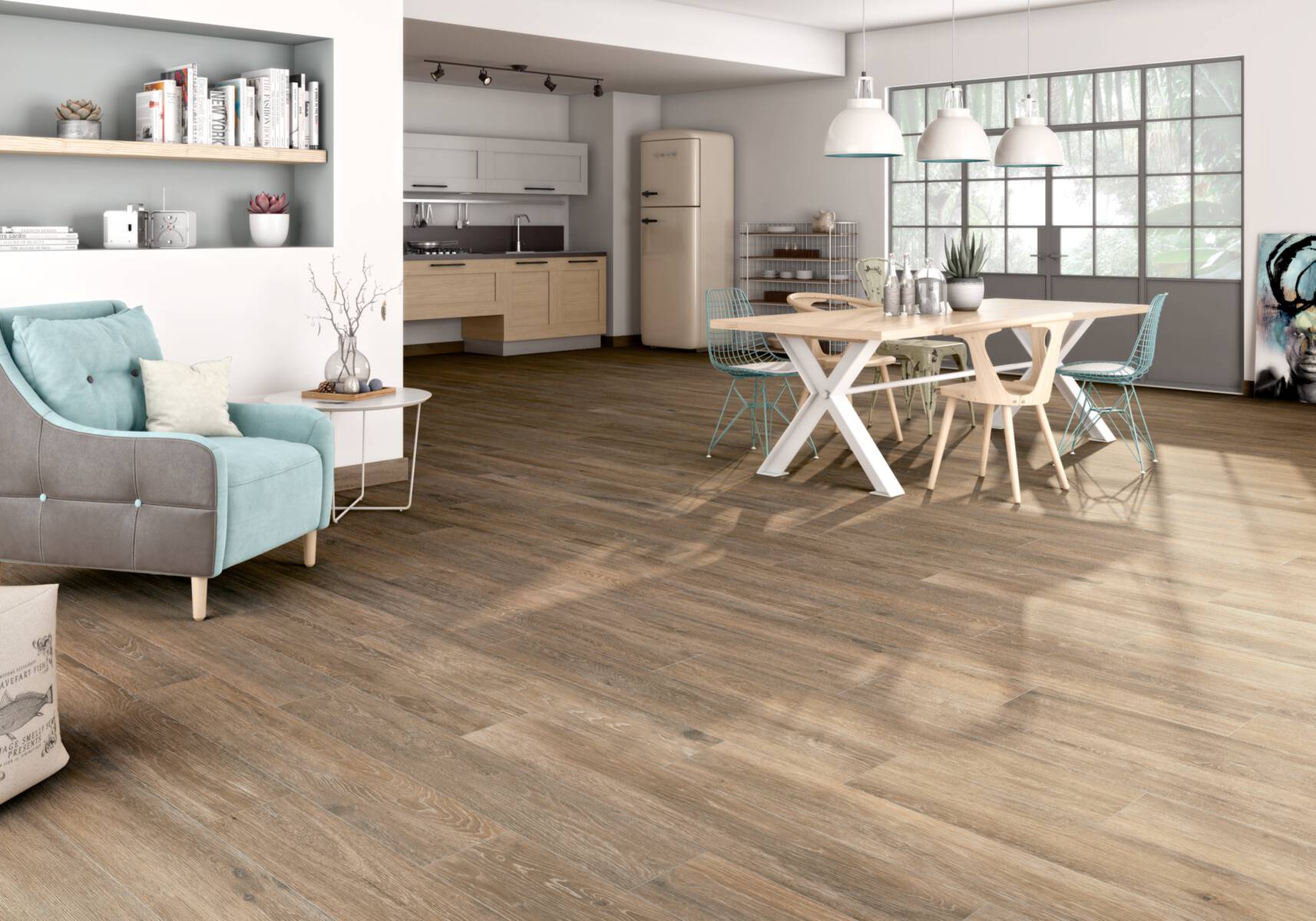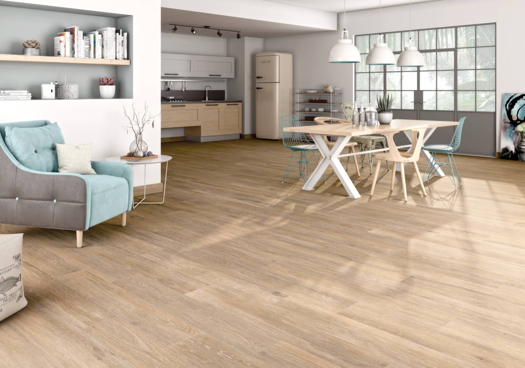 Nordische Zurückhaltung in einem innovativen Dielenformat. Die authentische Holzstruktur erhält durch das leicht gekalkte Finish den modernen Scandistyle und erzeugt ein Gefühl der Wohnlichkeit. Die großzügige Farbauswahl unterstreicht dabei den nordischen Stil.